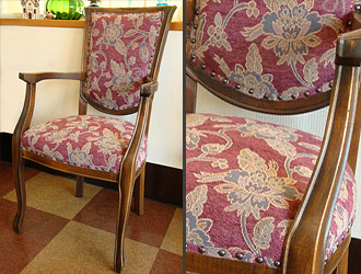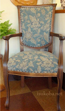 木部の塗装から張り上げるまで職人の手作業です。 コイルスプリングを使用してフランス・ドイツの椅子張り工法で仕上げています。 内部には【わら、芝草、ファイバー、馬毛、綿】など自然の素材を使っています。
