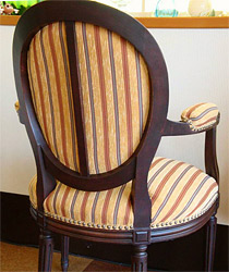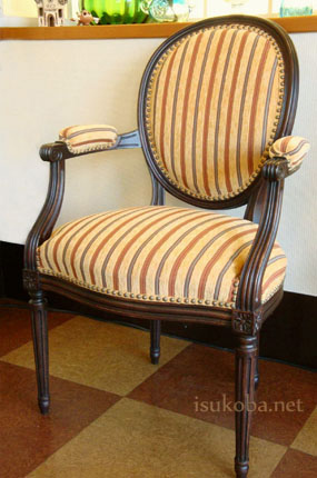 木部の塗装から張り上げるまで職人の手作業です。 コイルスプリングを使用してフランス・ドイツの椅子張り工法で仕上げています。 内部には【わら、芝草、ファイバー、馬毛、綿】など自然の素材を使っています。