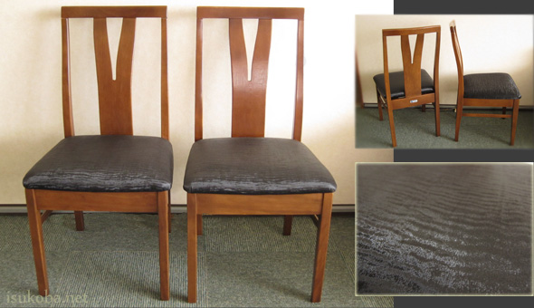 シンプルデザインのダイニングチェア2脚。 毛並みが感じられるような柄プリントの黒いレザーでシックに仕上げました。