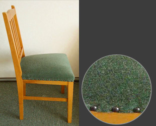 昭和40年代に製作された椅子。内部にはコイルスプリングを使い、昔と同じような材料と技術で張替えました。 グリーンのしっかりとしたモケット地を使用。